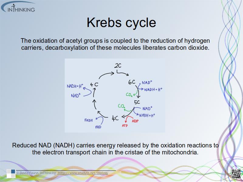 • the oxidation of acetyl groups is coupled to the reduction of hydrogen carriers, liberating carbon dioxide.