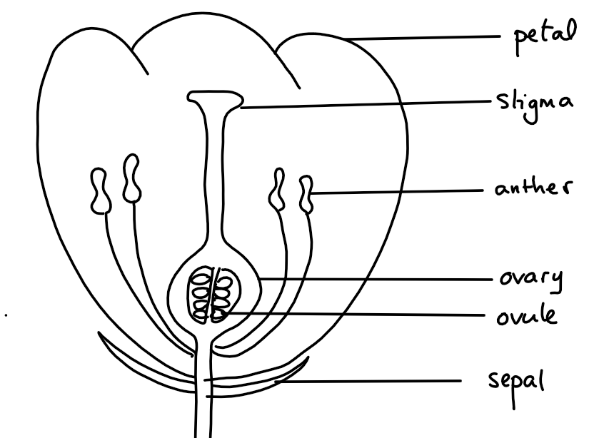 Exam style question about drawing an angiosperm flower