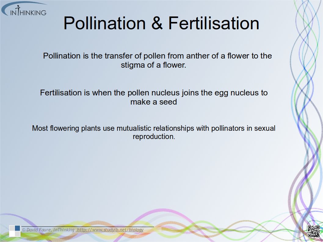 • Outline details of the processes of pollination, fertilization and seed dispersal which are needed for success in plant reproduction.