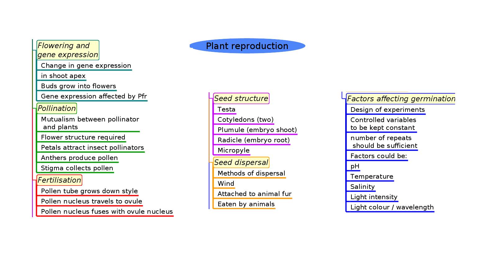 These diagram summaries cover the main sections of topic 9.4 Reproduction in plants.