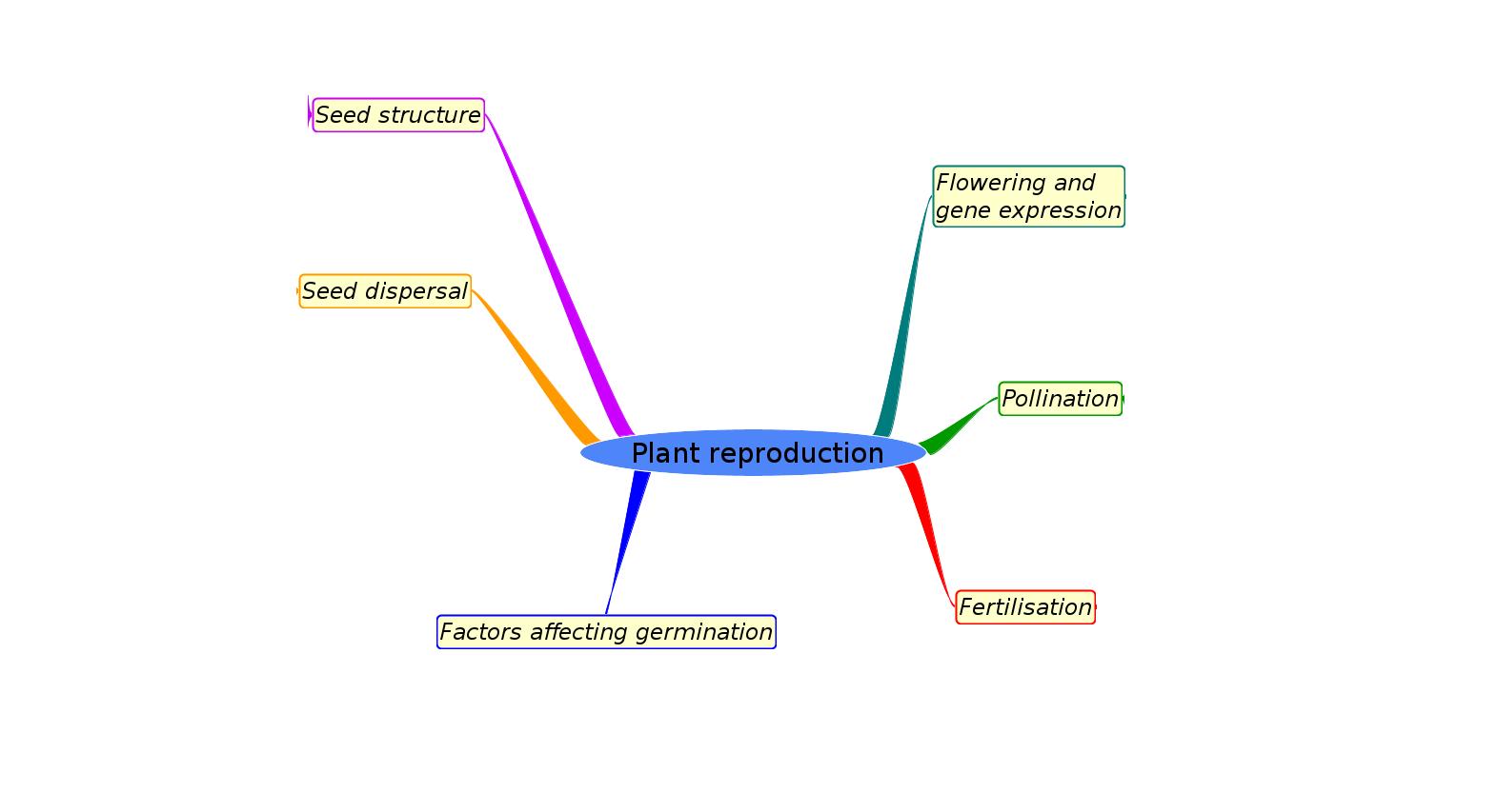 In this topic the need for flowers and pollination is explored quite simply. The parts of a flower, the processes of pollination and fertilisation as well as seed dispersal and germination are included. The mutualistic relationships between pollinators and flowers is interested to consider as well well as the phytochrome mechanism of stimulating flowering.