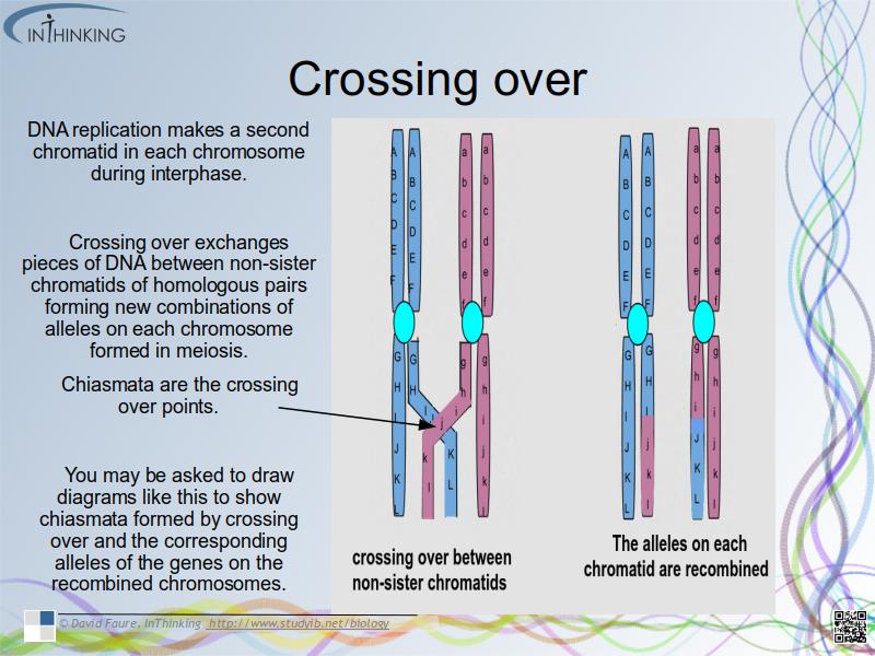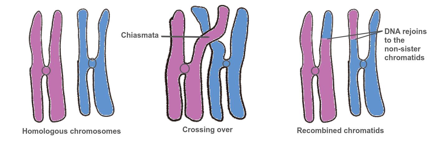 - Drawing diagrams to show chiasmata formed by crossing over.