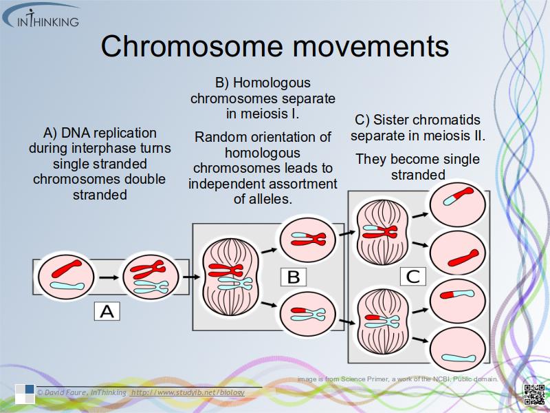 - Random orientation of homologous chromosomes in meiosis I leads to independent assortment of alleles.