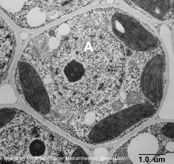 The image shows a transverse section of a plant cell seen using an electron microscope.