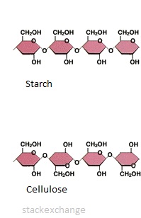 Cellulose and starch are both polymers of glucose. Why are they different in terms of their structure?