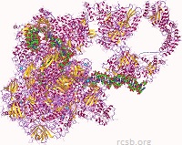 RNA polymerase adds an RNA nucleotide to a growing mRNA molecule during transcription.