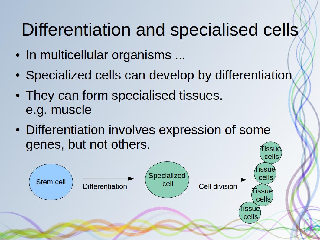 - Specialised tissues can develop by cell differentiation in multicellular organisms.