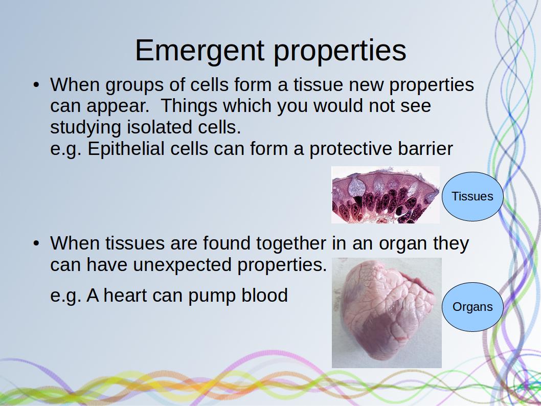 - Multicellular organisms have properties that emerge from the interaction of their cellular components, (Emergent properties).