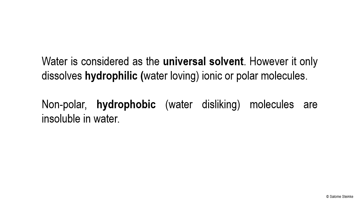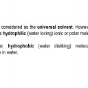 and solvent properties. - Glucose, amino acids and salts are hydrophilic while cholesterol and fats are hydrophobic.
