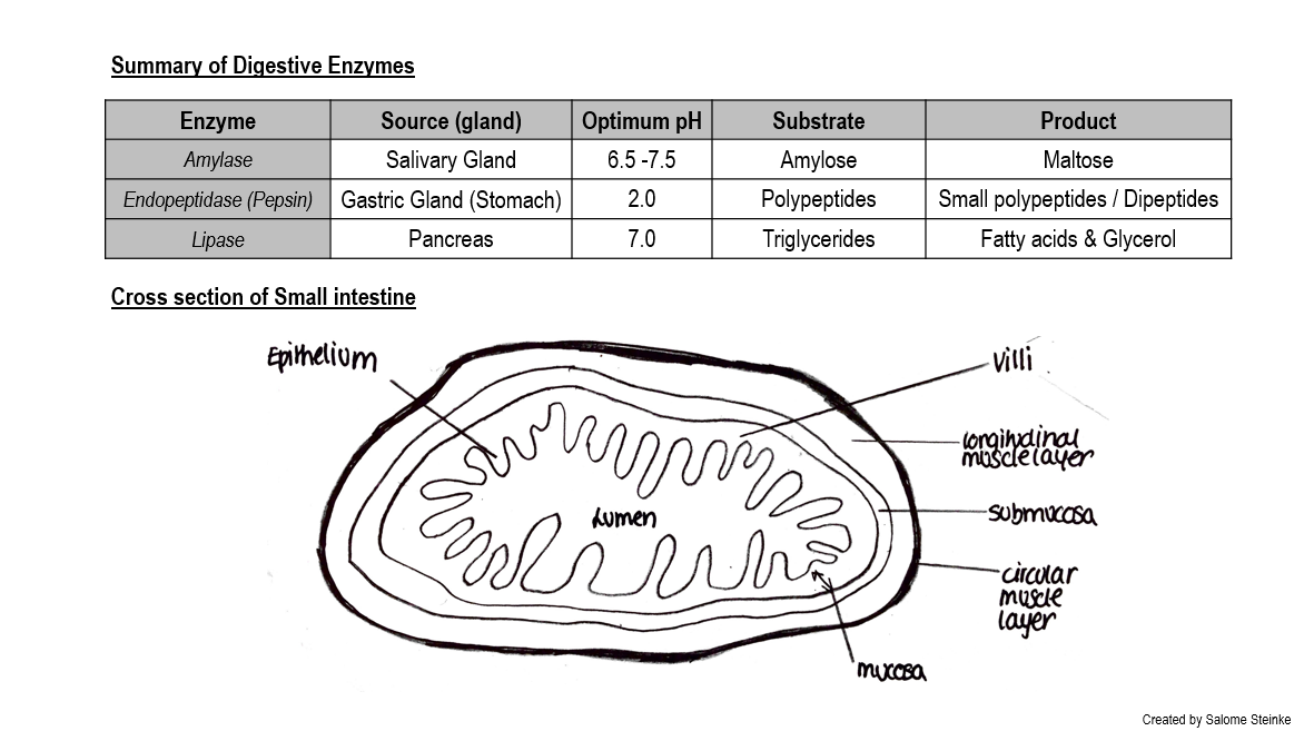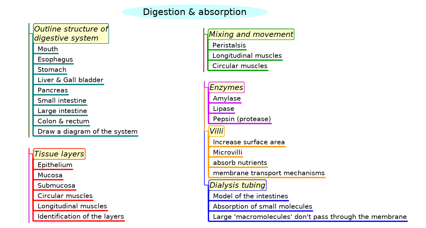 Summary list for 6.1 Digestion and absorption