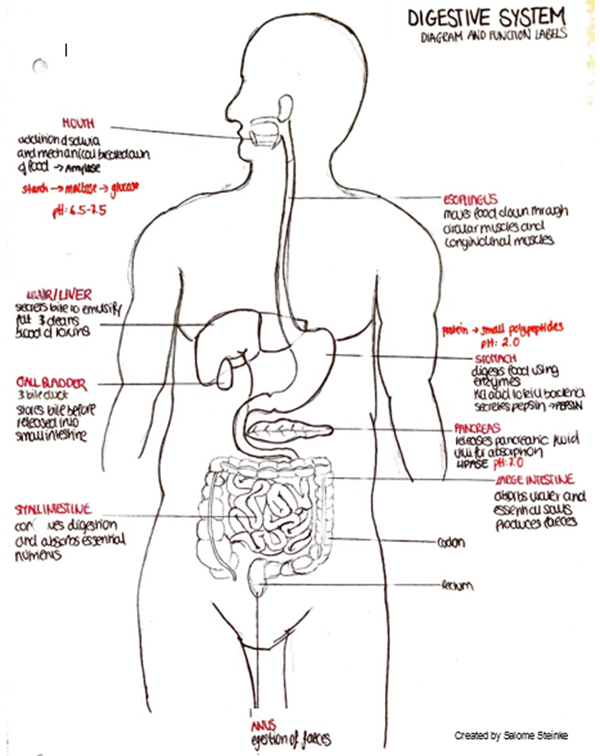 Try to sketch a diagram and place these organs into the digestive system.