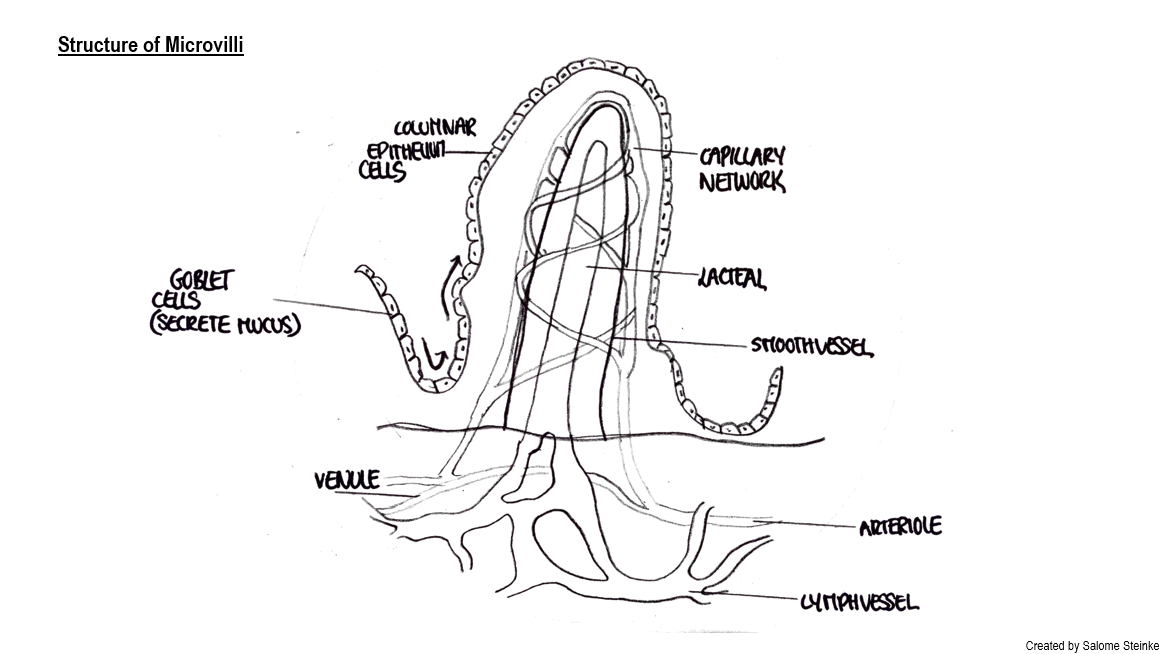 Capillary network to absorb nutrients into the blood.