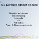 This topic covers the production of antibodies and the cascade of reactions in blood clotting. The functions of blood cells in the immune system as well as specific immunity and antibodies. Methods of transmission of HIV is also included.Learn and test your biological vocabulary for 6.3 Defence against disease using these flashcards.