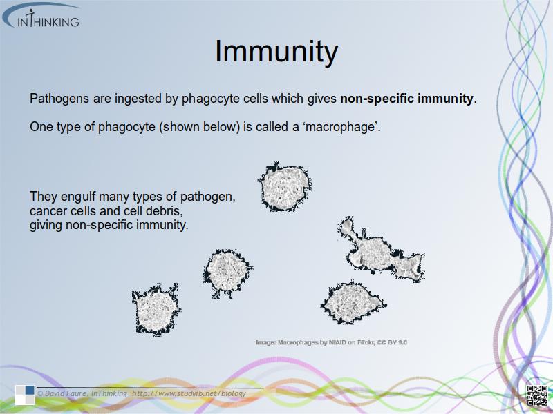 - Pathogens are ingested by phagocyte cells which gives non-specific immunity.