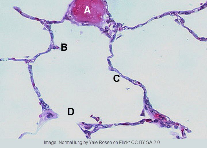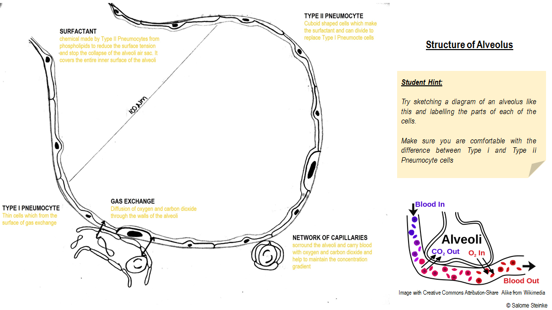 - Draw a diagram to show the structure of an alveolus and an adjacent capillary. Alveoli consist of two types of pneumocytes;