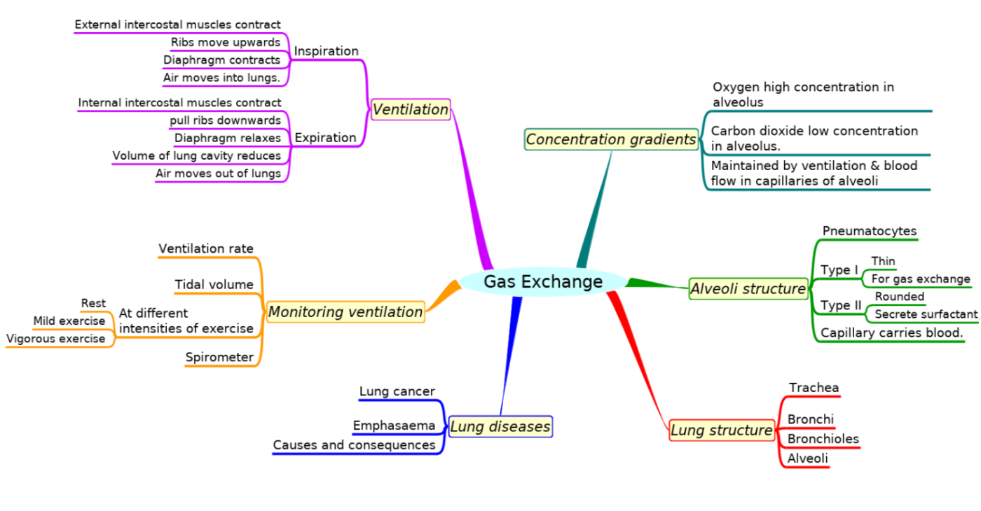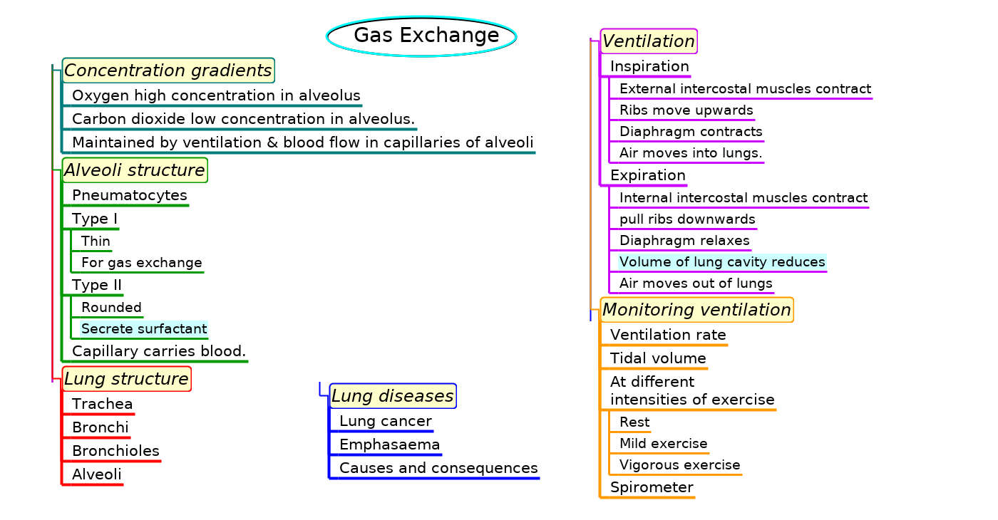 Summary list for 6.4 Gas exchange