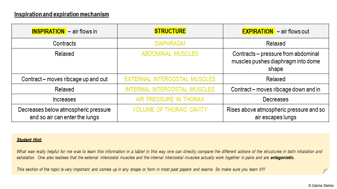 - External and internal intercostal muscles, and diaphragm and abdominal muscles are antagonistic muscles, required for inspiration and expiration because muscles only work by contracting.
