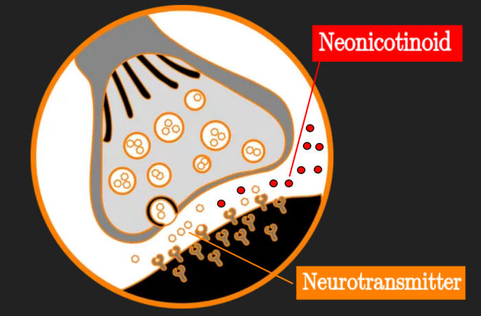 A type of pesticide called "neonicotinoid" interacts with the synapses that use the neurotransmitter acetylcholine.
