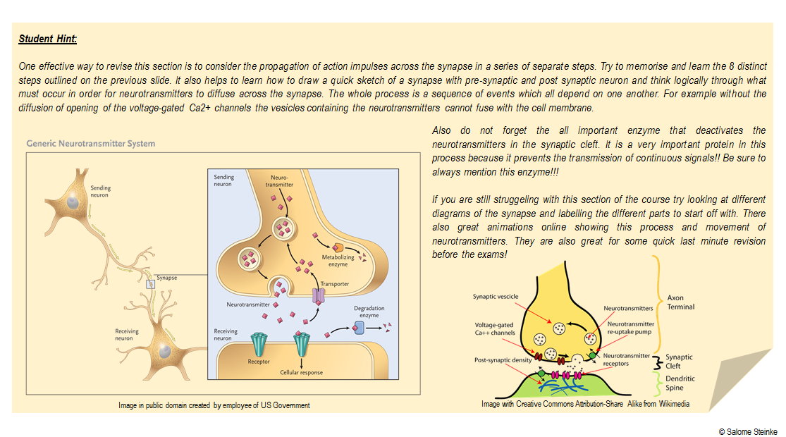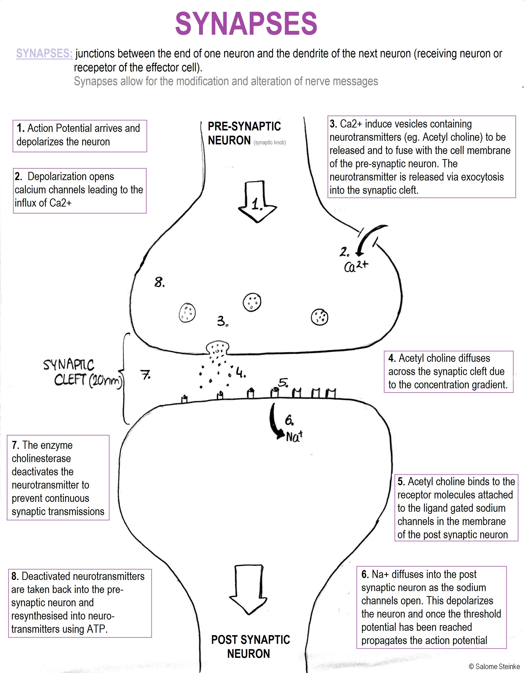 - Understand that secretion and reabsorption of acetylcholine by neurons occurs at synapses.
