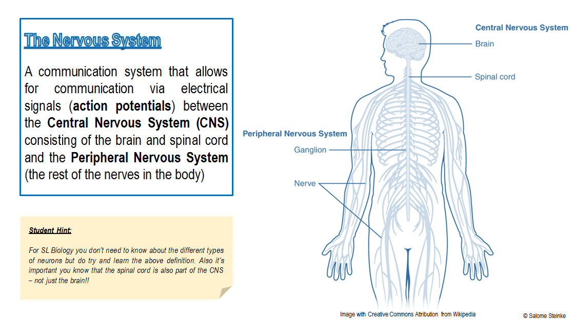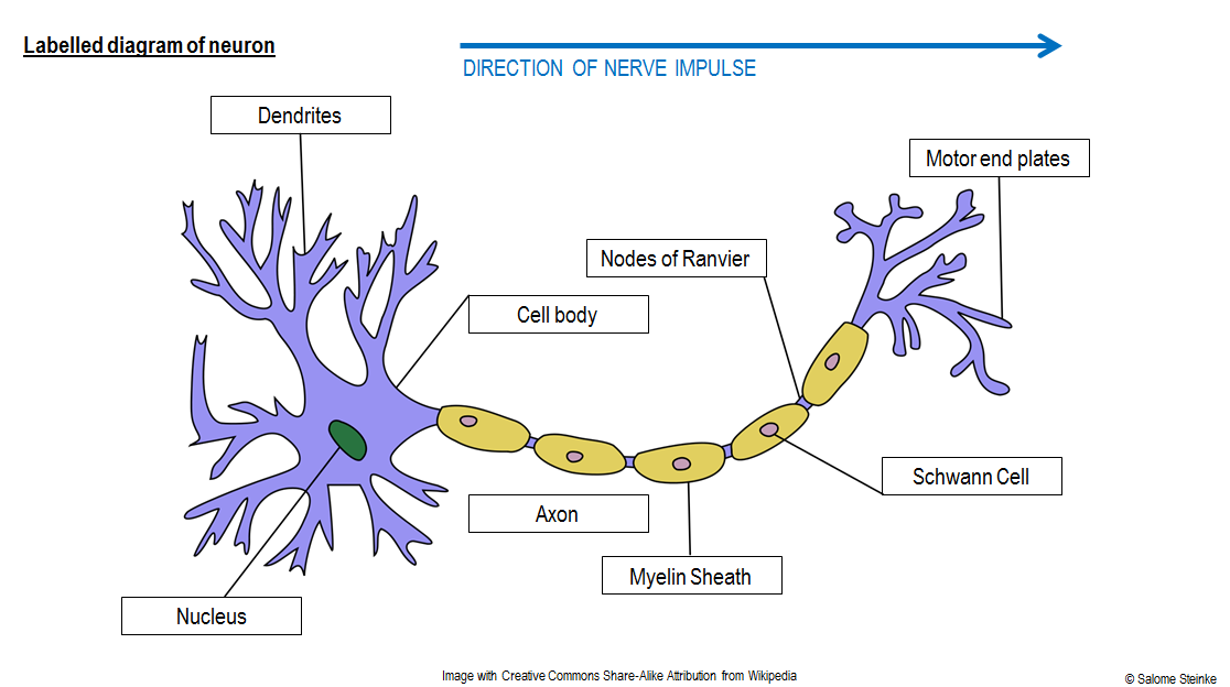 - Electrical impulses are transmitted in neurones (details of neuron types not required).