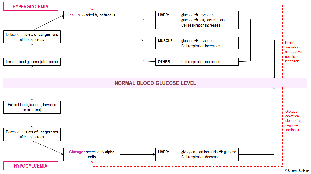 ly distributed. - Insulin and glucagon control blood glucose (cells in islets of pancreas).