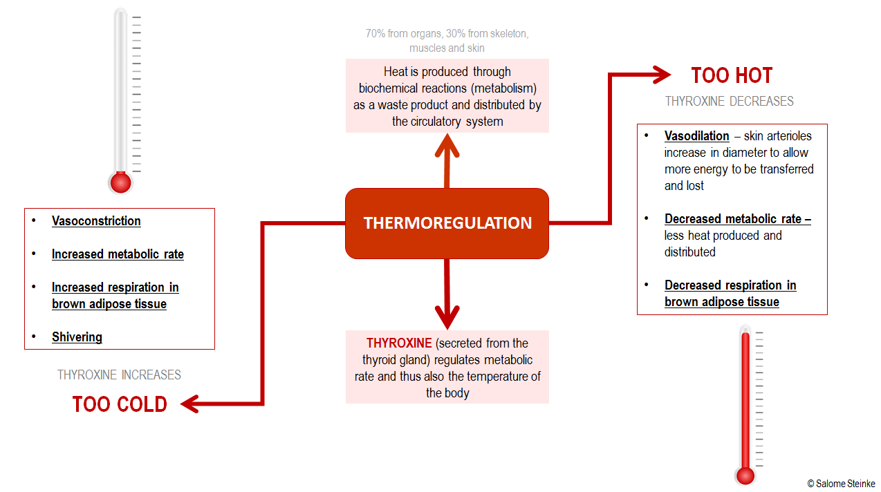- Thyroxin regulates metabolic rate & partly controls body temperature. (thyroid gland).