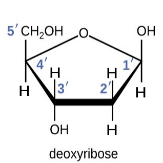 The nucleotide consists of a sugar (deoxyribose in DNA or in RNA), a group and a (adenine, , cytosine and thymine.