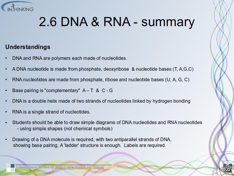 Understanding the structure of DNA and RNA is an important skill from this topic.