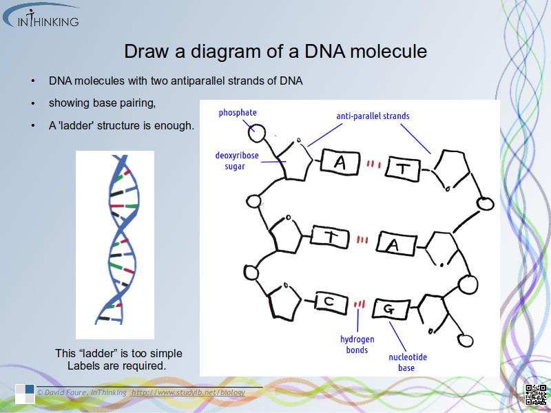 Examiner hint: An annotated diagrm can be used to answer a question on the structure of DNA.