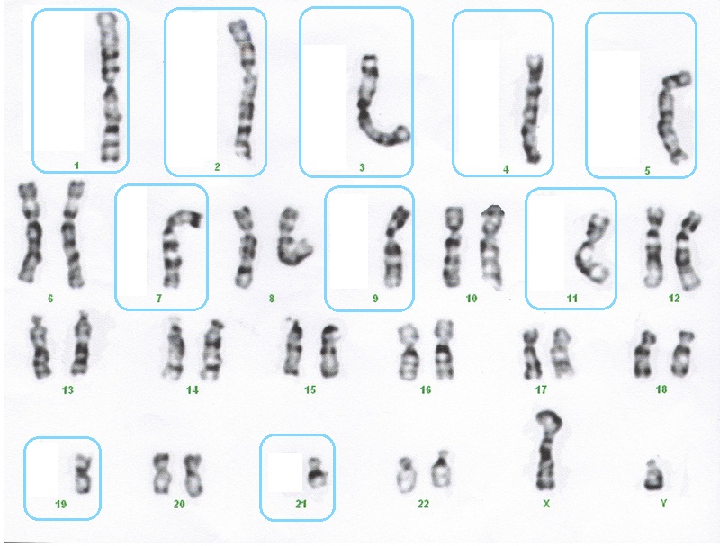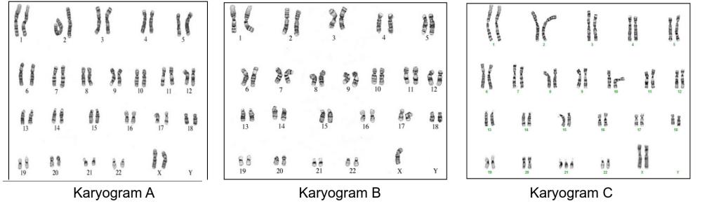 Analyse these karyotypes, giving a statement about the genetic condition and an explanation [3]