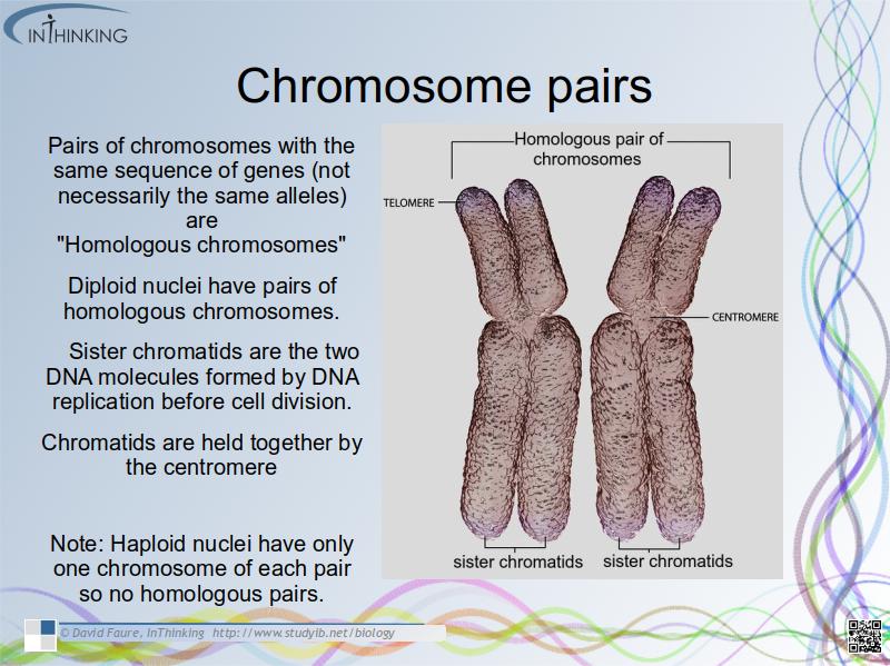 - Pairs of chromosomes with the same sequence of genes (not necessarily the same alleles) are "Homologous chromosomes".