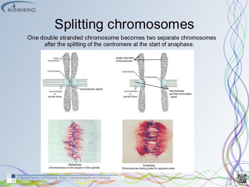 - two separate chromosomes are formed at the splitting of the centromere at the start of anaphase.