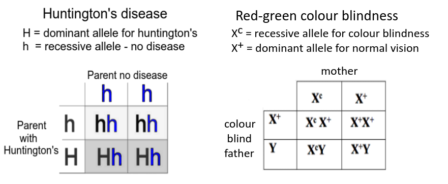 - Some genetic diseases are sex-linked, shown as superscript letters eg. Xh. The pattern of inheritance is different due to their location on sex chromosomes.