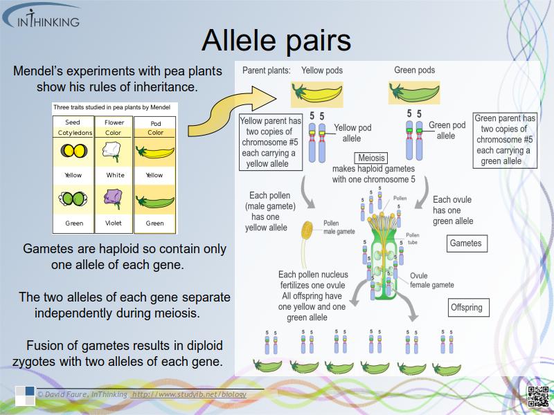 - Gametes are haploid so contain only one allele of each gene.