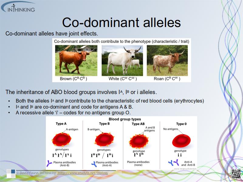 - Dominant alleles mask the effects of recessive alleles but co-dominant alleles have joint effects.