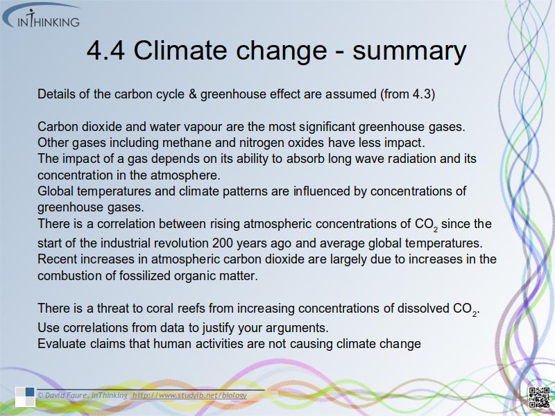 Summary list for topic 4.4 Climate change
