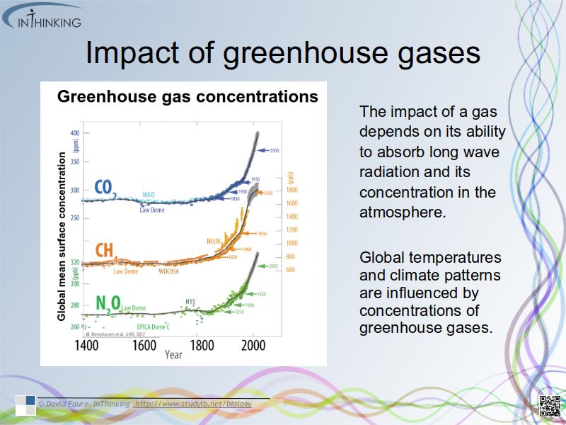 - The impact of a gas depends on its ability to absorb long wave radiation and its concentration in the atmosphere.