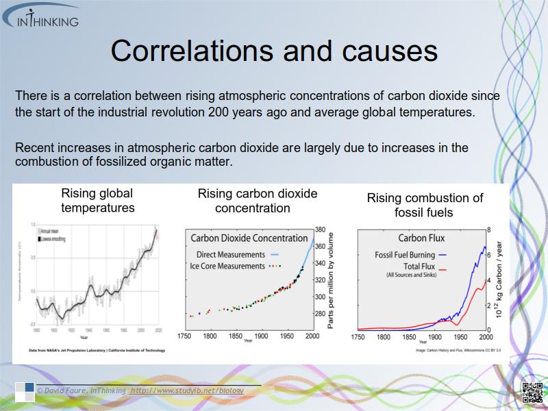 - There is a correlation between rising atmospheric concentrations of carbon dioxide since the start of the industrial revolution 200 years ago and average global temperatures.