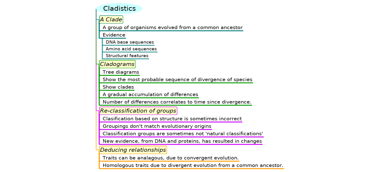 - Appreciate that in the light of new evidence some cladograms are changed.