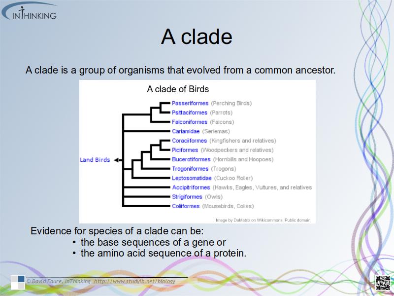 - A clade is a group of organisms that have evolved from a common ancestor.
