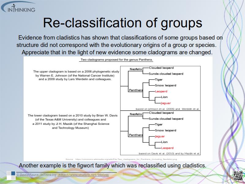- For example the reclassification of the figwort family using evidence from cladistics.
