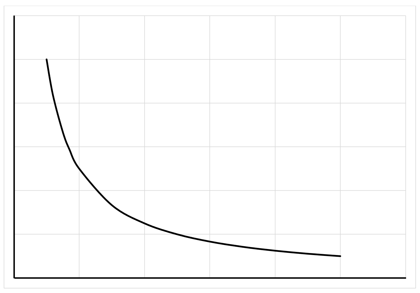 P against V will give the curve (a hyperbola) as shown in the diagram since (in the same way as above) PV=constant, as pressure is increased volume decreases and vica versa. This inversely proportional relationship will (mathematically) always give a curve when plotted.