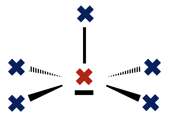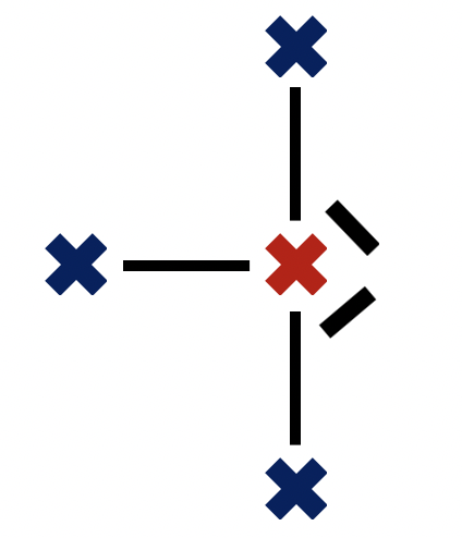 The shape of the electron domains is trigonal bi-pyramidal, but with two equatorial (rather than axial) vertices missing (the lone pairs) the bonds form the shape of a 'T'.