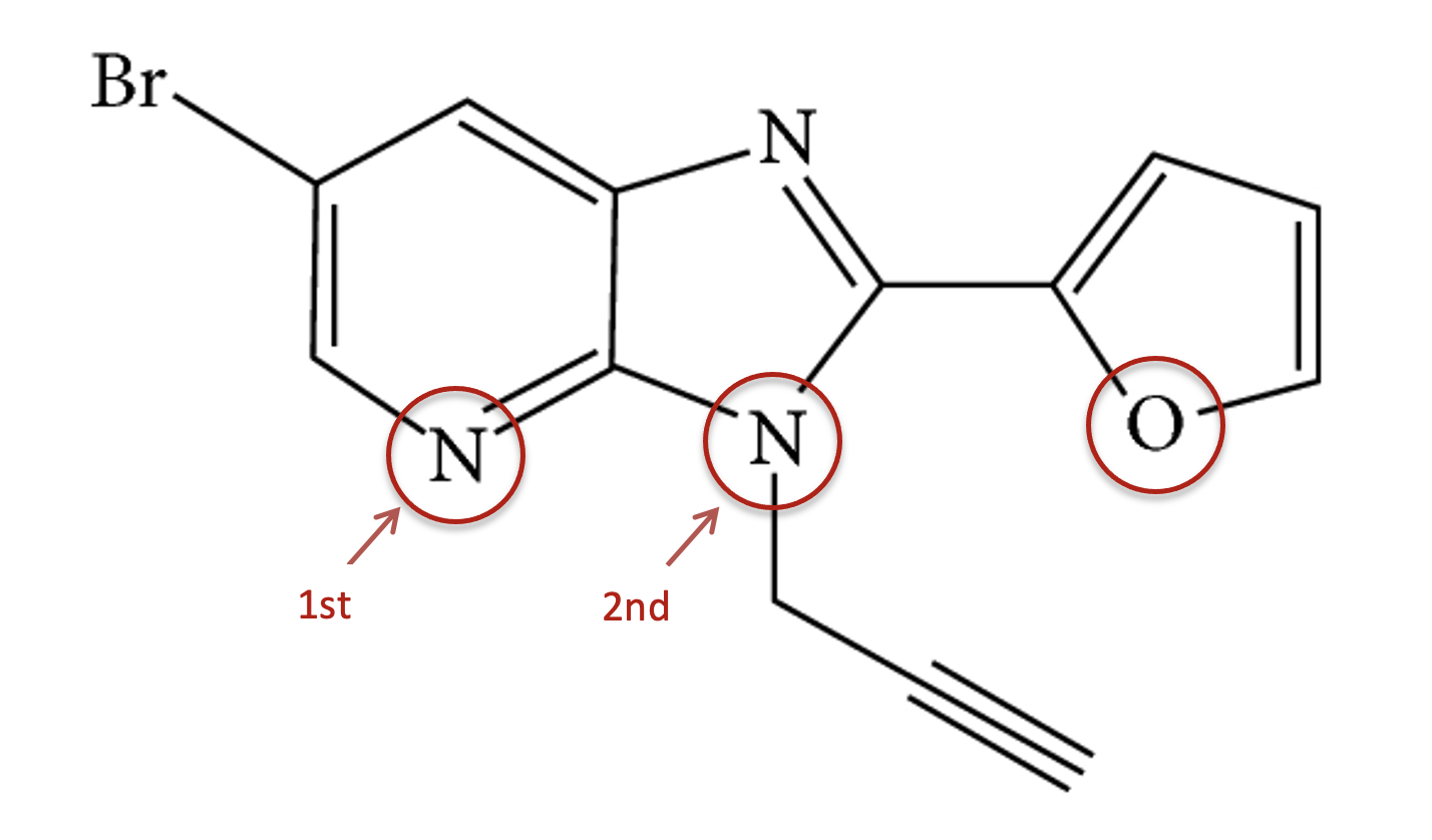How many carbon atoms (grey) are sp3, sp2 and sp hybridized in the molecule shown?