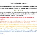 energy level, sub-level, orbital, atomic radius, nuclear charge, shielding*, first ionization energy*, second ionization energy*, convergence limit