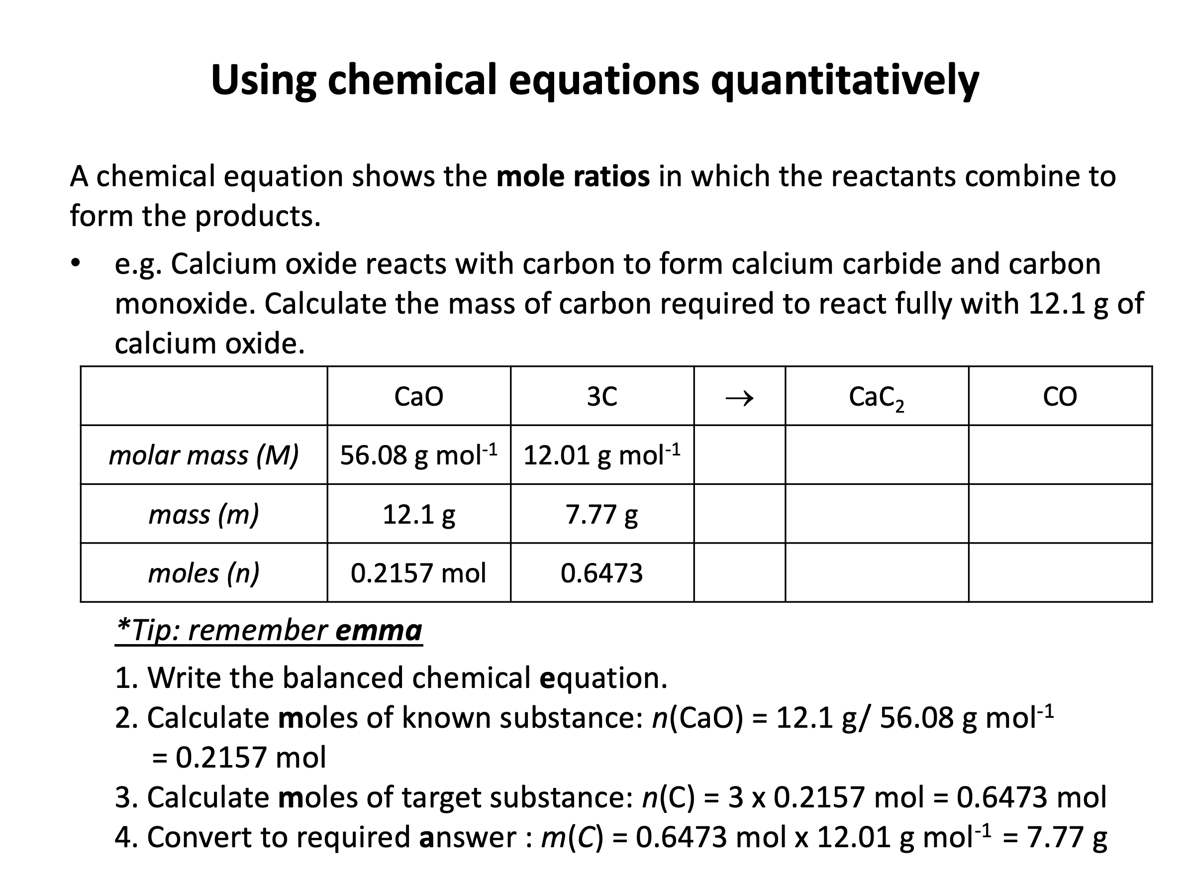 There is not a great deal of knowledge to learn in order to be confident with mole calculations, but you may well need lots of practice. There are only certain ways in which questions on stoichiometry are asked in exams, so attempt as many questions as you can until you start to recognise the different types and feel more confident answering them.