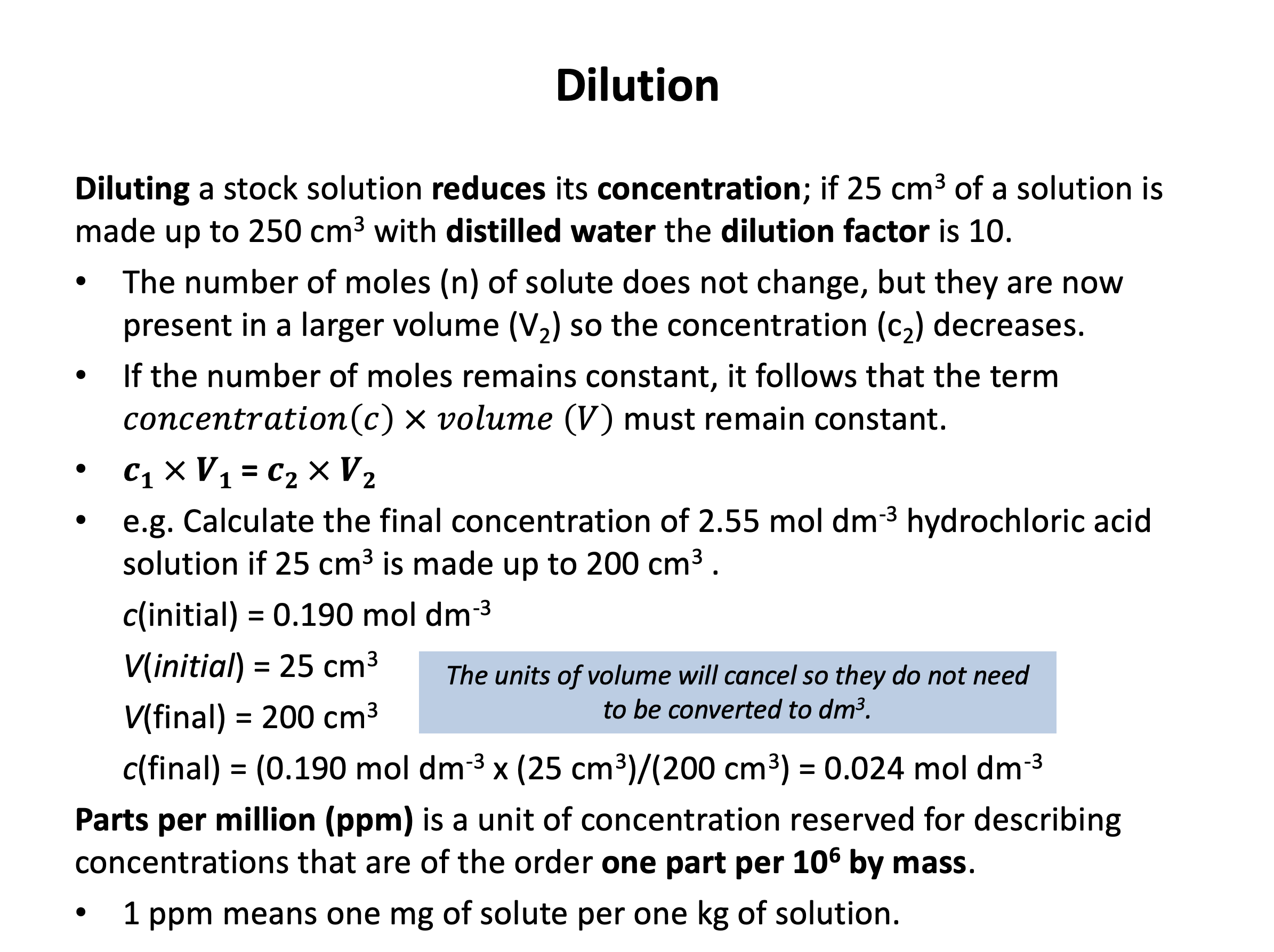 A titration can be used to measure the concentration of oxalic acid (ethandioic acid) in aqueous solution according to the following equation. Phenolphthalein is used as an indicator.