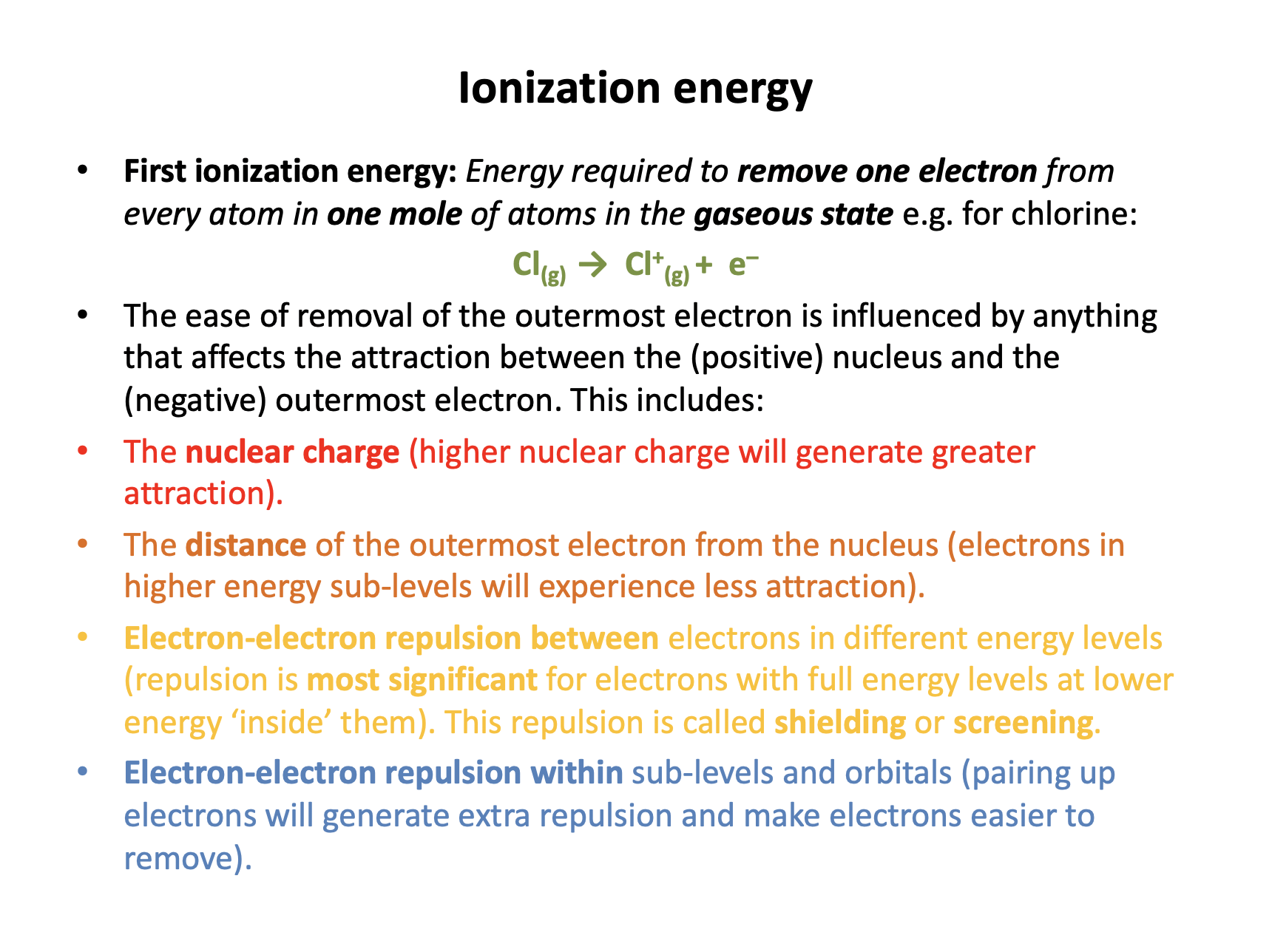 3 The electron removed has greater 'shielding' (repulsion) by complete inner energy levels of electrons