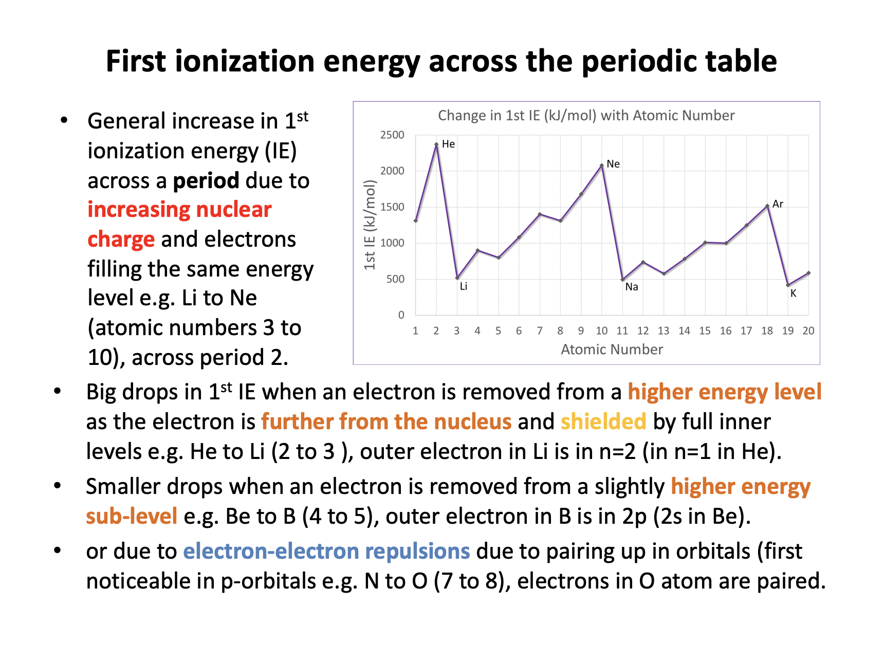 2 The electron removed is paired-up with another electron in the same orbital, resulting in repulsion