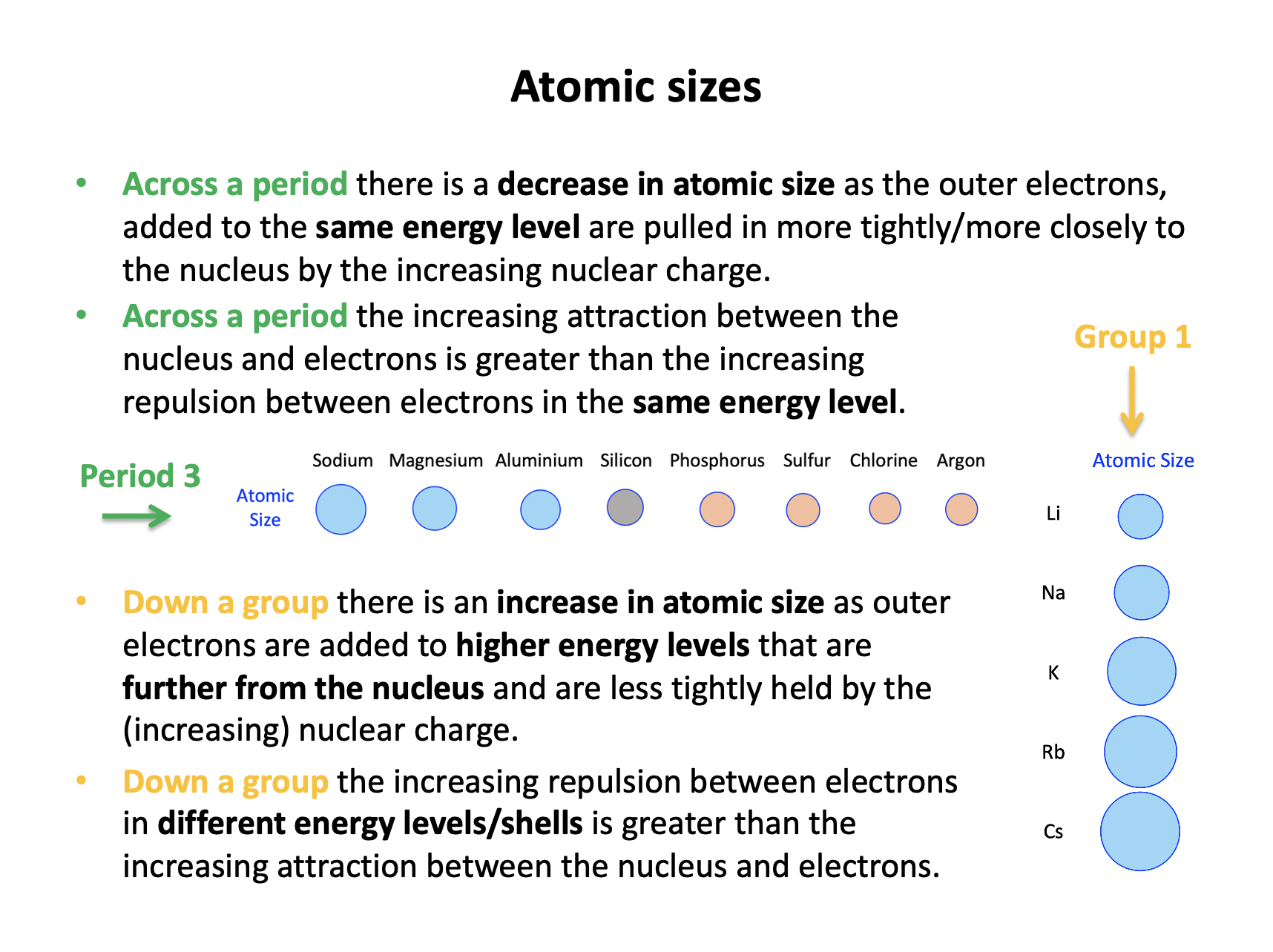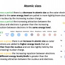 Down any group of the periodic table there is a general increase in atomic radii due to the electrons filling new energy levels.